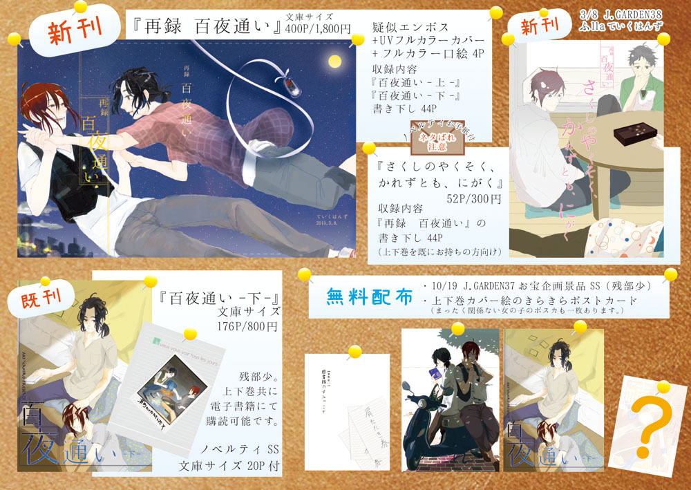 J庭のノベルティとシブで公開していた百夜通いの短編まとめです。手触りがとてもよいです。